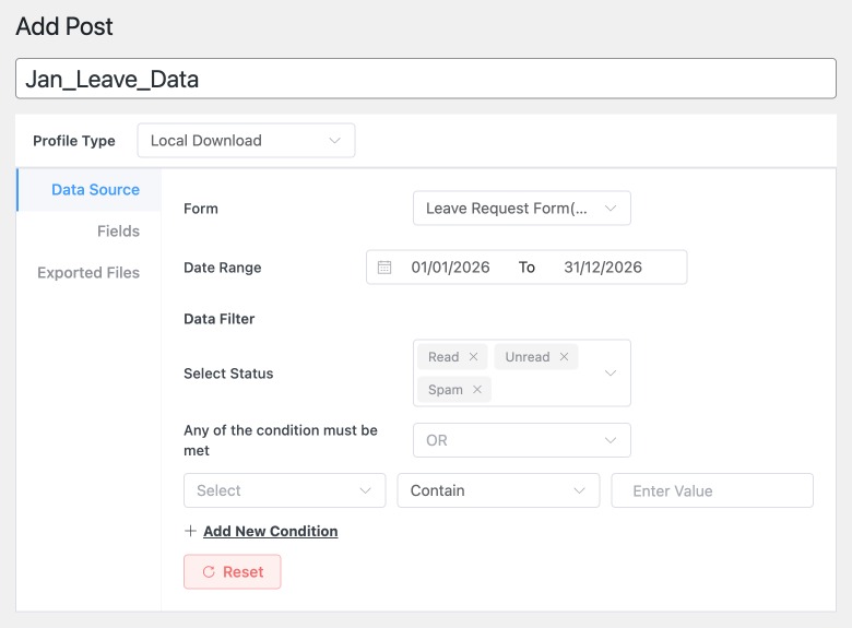 Features like Export Profiles make it easy to generate filtered export files, helping website owners analyze their data and keep organized records of form submissions.