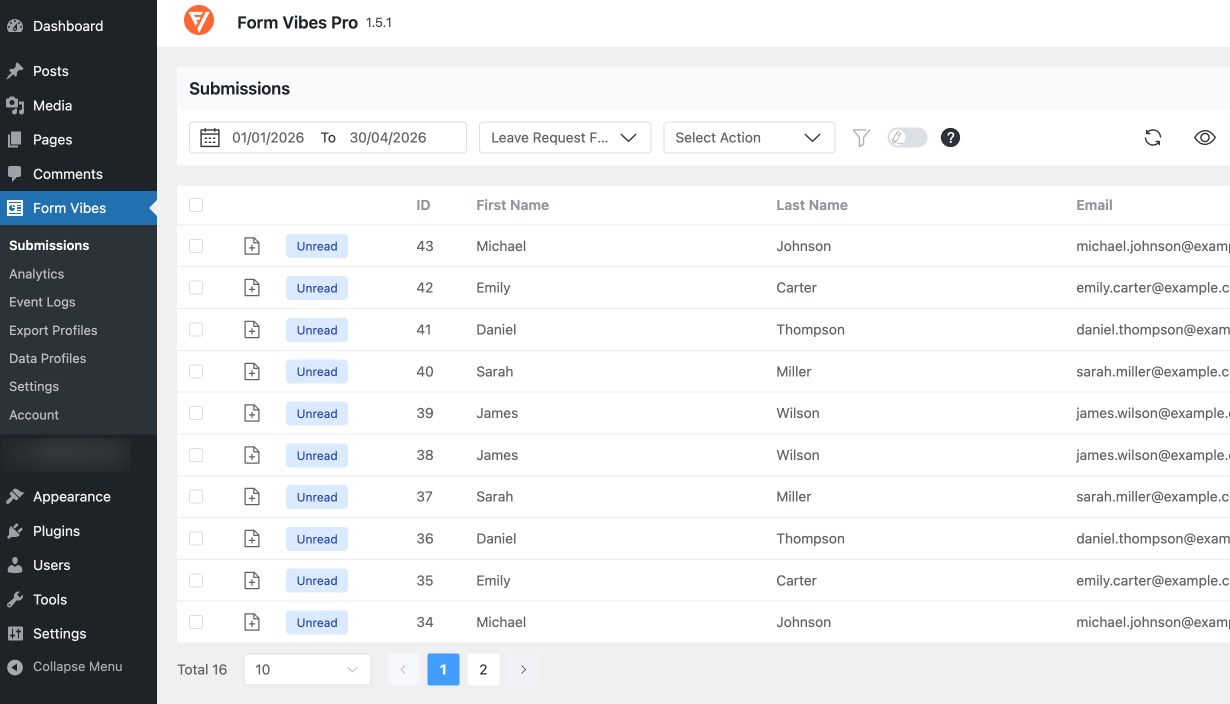 Using a submission manager like Form Vibes helps store entries safely in the database and provides powerful tools to manage and export submissions quickly.